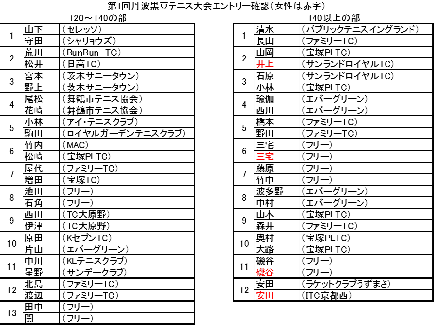 エントリー登録状況をご確認の上、間違い、訂正箇所等ありましたらお知らせください。